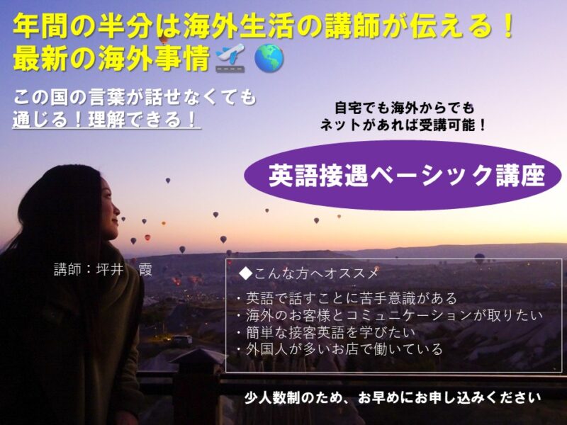 英語接遇ベーシック認定講座 講師:坪井 霞 1月20日(火)【ZOOM】日程相談承ります。