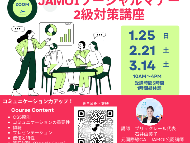 ソーシャルマナー2級対策講座 講師:石井由美子 【ZOOM】