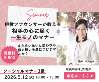 ソーシャルマナー3級認定講座 講師:千賀 絢子 5月12日(火)